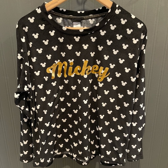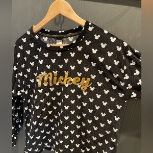 Women’s Disney Mickey Mouse sleep shirt. Size medium. Colors are black and white with gold Mickey. Long sleeve. Stretchy-soft fabric.