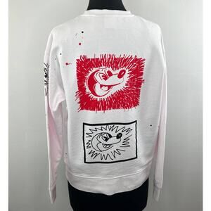 Disney Mickey Mouse x Keith Haring White Crewneck Graphic Print Pullover Top S
