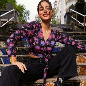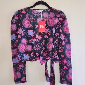 🆕 Disney Mickey Paisley Wrap Blouse Whimsigoth Boho Women Small