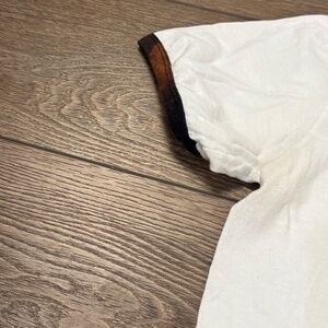 Logo on front, ringer style t-shirt with black trim at collar and sleeves