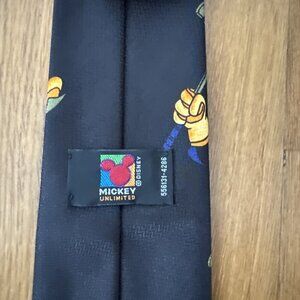 This Disney Mickey Unlimited Daffy Duck Goofy Hockey Black Short Necktie is a vintage piece featuring classic cartoon characters like Mickey Mouse. Made from polyester with a woven fabric type, this black tie is designed with a pointed style and adjustable attachment. Perfect for men who appreciate Disney themes, this one-size tie is a unique and fun addition to any outfit, showcasing the beloved characters in a playful and colorful way.