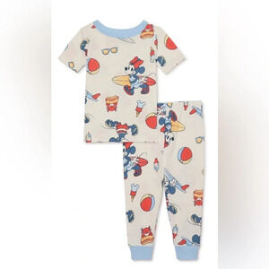 New pair of Disney pajamas with Mickey and Minnie in a fun summer theme. 100% cotton. Size 2T.