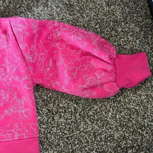 Make a fashion statement with this comfy sweatshirt featuring everyone's favorite duo. This trendy top includes an allover Mickey and Minnie print, balloon sleeves, and cropped banded hem.