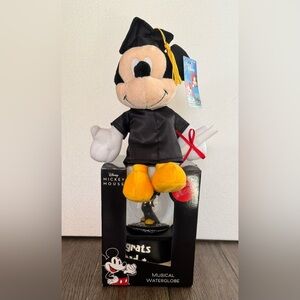 Adorable Disney Mickey and Minnie Mouse musical waterglobes. Features Mickey and Minnie in graduation attire. Perfect for Disney fans.