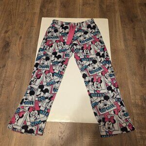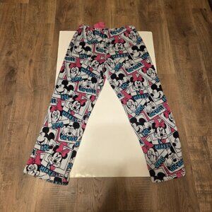 Disney Mickey and Minnie Mouse Women's Pajama Plush Fleece Pants with Phrases