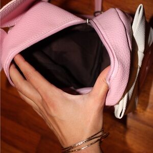 Adorable pink kids backpack featuring a cute bow design. Perfect for little ones to carry their essentials in style.