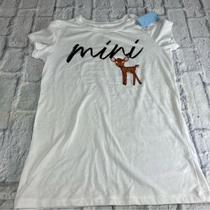 Disney T-shirt ; this is a white T-shirt with the word "mini" and a little baby deer on the front of the T-shirt. This is new with tags. This comes from a smoke free home and will be mailed same business day