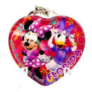 Let your heart follow the magic with this retro-style heart keychain featuring Minnie Mouse and Daisy Duck in vibrant, vintage-inspired hues. The glossy finish, bold floral accents, and playful “Florida” text evoke sunshine-soaked boardwalks and childhood memories wrapped in pixie dust. A nostalgic nod to classic Disney charm.