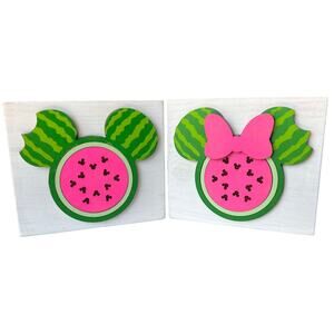 Disney Minnie & Mickey Mouse Summer Watermelon Wood Signs Rustic Decor Set