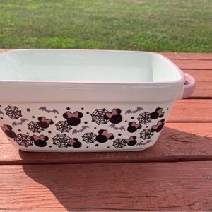 Disney Minnie Mouse Baking Dish NEW Halloween Spider Web Pink Handles Loaf Bread