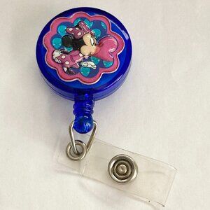 Disney Minnie Mouse Charm ID Badge Holder Lanyard Retractable Reel Pink Dots