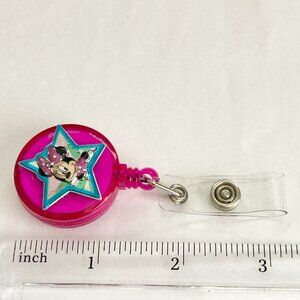 Disney Minnie Mouse Charm ID Badge Holder Lanyard Retractable Reel Pink Dots