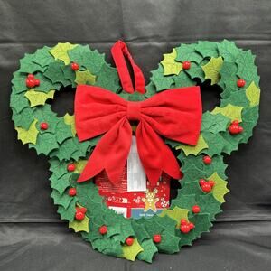 Disney Minnie Mouse Christmas Wreath Holly Berries with Red Bow Festive Door New