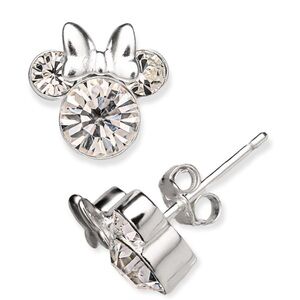 This set is for all Disney lovers! Disney Minnie Mouse Clear Crystal Sterling Silver Earrings with a Ceramic Trinket Dish all in a gift box.