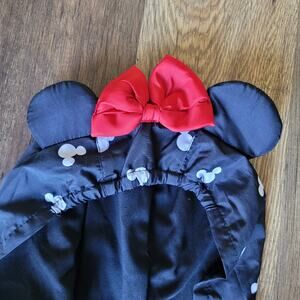 The adorable black and white pattern is accented with classic Minnie Mouse ears and a charming red bow. So cute and practical for any Minnie fan!