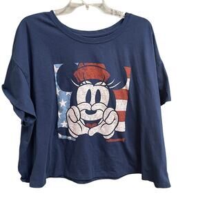 Excellent condition womens size 3X cropped loose graphic tee from Disney with a Minnie Mouse and flag graphic on the chest