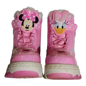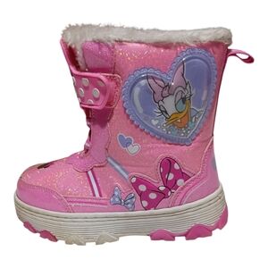 Disney Minnie Mouse Daisy Girls Pink Glittery Light Up Winter Snow Boots Size 12