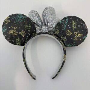 Disney Minnie Mouse Ears Headband 100th Anniversary Print Silver Star Bow