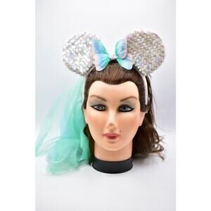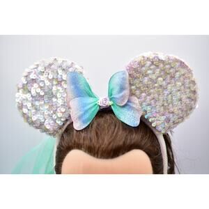 Disney Minnie Mouse Ears Sequined Fairy Wings Bow Veil Sequin Headband Glitter