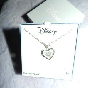 Disney Minnie Mouse Fine Silver Embossed Heart Necklace NWT/NEW