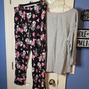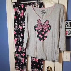 Disney Minnie Mouse Floral Pajama Set Gray and Black 2x