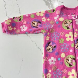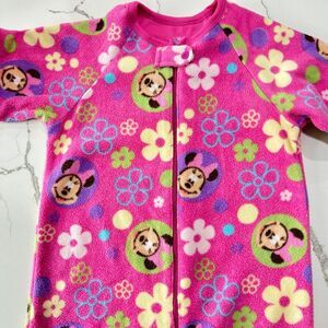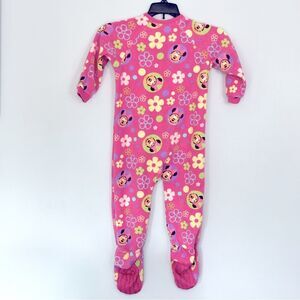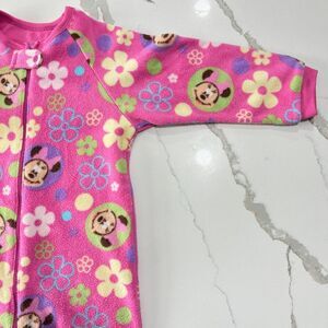 Disney | Minnie Mouse Footed Pink Fleece Multicolored Floral Pajamas Sle…