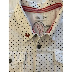 Disney Minnie Mouse Forever White Black Polka Dot Denim Sequin Jacket 1X