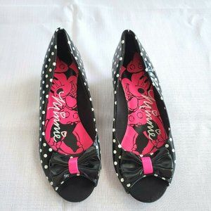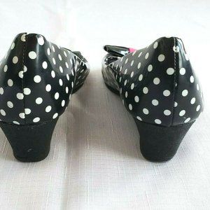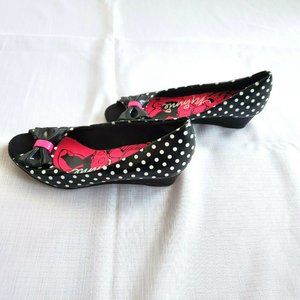 Disney Minnie Mouse Girls US 13 Polka Dot Peep Toe Bow Dress Shoes Wedge Heels