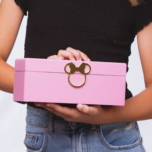 Disney Minnie Mouse Gold Icon Pink Lacquer Wood Jewelry Organizer