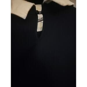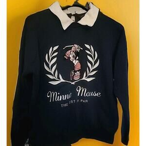 Elevate your wardrobe with this chic Disney Minnie Mouse Golf Sweater. The sweater features an embroidered Minnie Mouse design and a collared neckline. It is made of a knit fabric and has long dolman sleeves. The sweater is a size M and fits regular. It is easy to care for and machine washable.