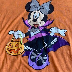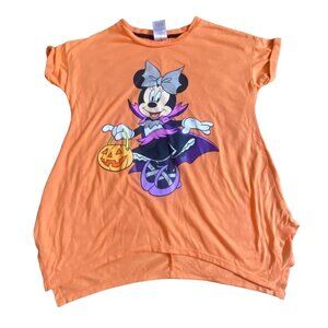 Disney Minnie Mouse Graphic Print Halloween Shirt-Orange-XL-GUC