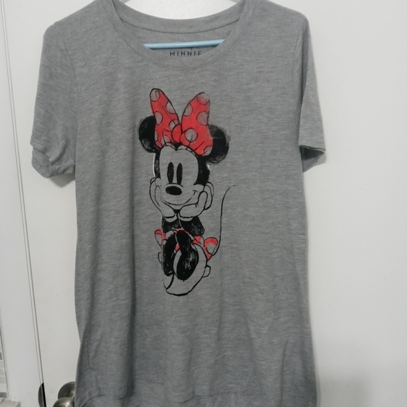 Disney Minnie Mouse Gray Red Black Short Sleeve T Shirt