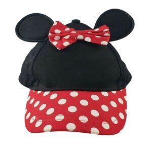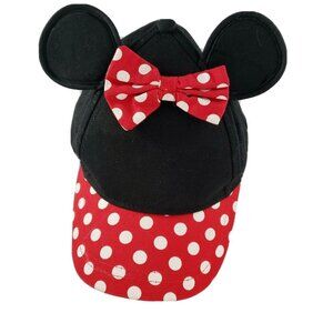 Disney Minnie Mouse Kids Baseball Cap With Ears & Bow Polka Dots Black Red