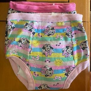Adorable Disney underwear with Minnie Mouse design. Features pink, yellow, and multicolor patterns. Perfect for kids.