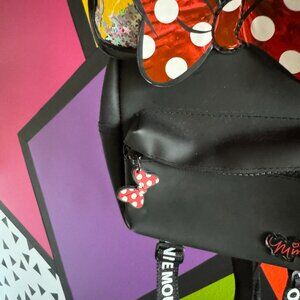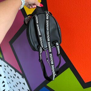 Disney Minnie Mouse themed Black Mini Backpack. The straps has Minnie Mouse printed and the ears have glitters that moves as well, see photos. Bag is Mini size/style 8" x 7" x 2,5"