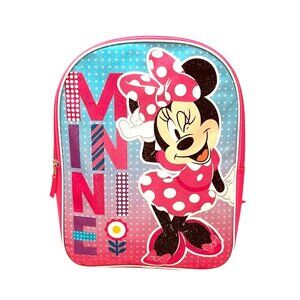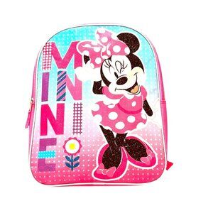 Add sparkle and fun to your little one’s day with this adorable Disney Minnie Mouse backpack! Featuring Minnie in her classic pink polka dot dress and bow, this bag is perfect for school, travel, or everyday adventures. The vibrant design includes glitter accents and the word "MINNIE" in colorful block letters.