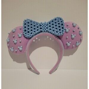 Disney Minnie Mouse Pink Ears Beaded Baby Blue Bow