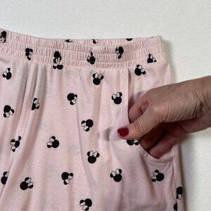 Disney Minnie Mouse Pink Pajama Set Short Sleeve Top Shorts Pockets Size M