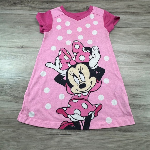 Disney Minnie Mouse Pink Polka Dot Nightgown Pajama Dress Kids Size 4