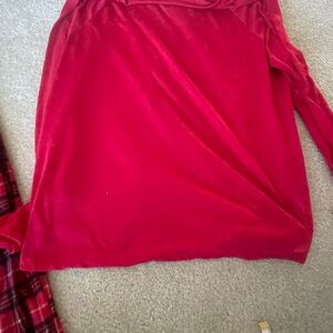 Cozy and fun, this pajama set features a vibrant red plaid design. Perfect for bedtime comfort. The top is women’s size L and the bottoms are women’s size XL. Very comfortable and cute set. Approximate measurements and materials included in photos. Disney. Minnie mouse. Disneyland. Disney World. Walt Disney. Classic. Winter.