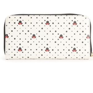🆕 Disney Minnie Mouse Polka Dot Red Bow Appliqué Full Zip Wallet Gold Hardware