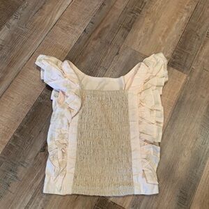 Disney Minnie Mouse Polka Dot Ruffled Little Girl Tank Top Tan Pink Size 4. Gently used.