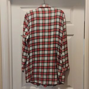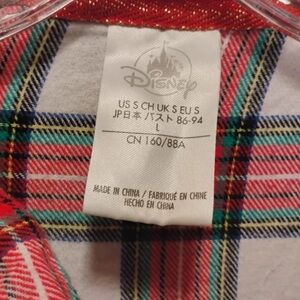 Disney Minnie Mouse Red Plaid Button-Up Sleep Shirt Nightgown Long Top Size S