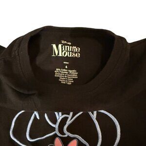 Features Minnie Mouse outline with pink bow graphic on black tees.