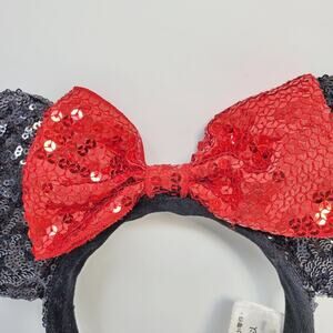 Disney Minnie Mouse Sequin Ears Black Red Hair Accessories