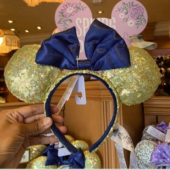 Brand new with tags Disney Minnie Mouse Sequined Headband Gold Blue Ears Headband Disneyland Resort Disneyland Theme Park Disney Minnie Mouse Sequined Headband Gold Blue Headband Disneyland Resort Disneyland Theme Park 50th Anniversary Ears