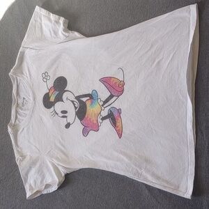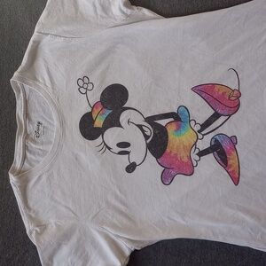 Disney Minnie Mouse Shirt Women's White Tye Dye Short Sleeve Crewneck