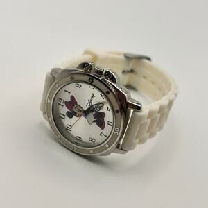 Disney Minnie Mouse Silver Tone White Silicon Band Watch Working New Battery