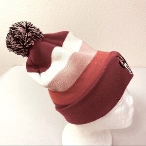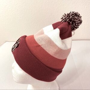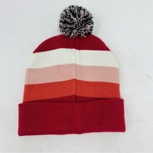 This is a Disney Minnie mouse striped knit beanie with Pom