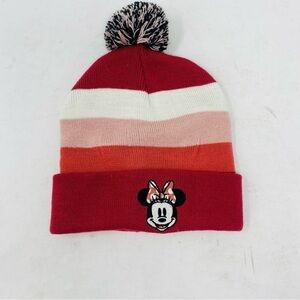Disney Minnie Mouse Striped Knit Beanie W/ Pom OS
